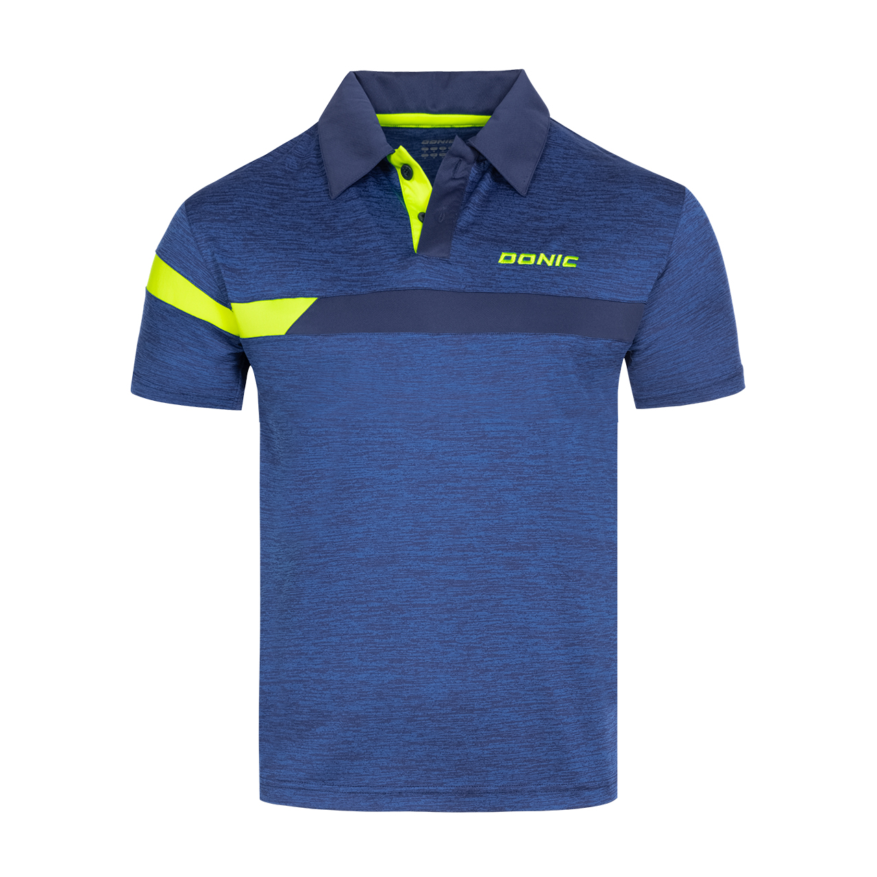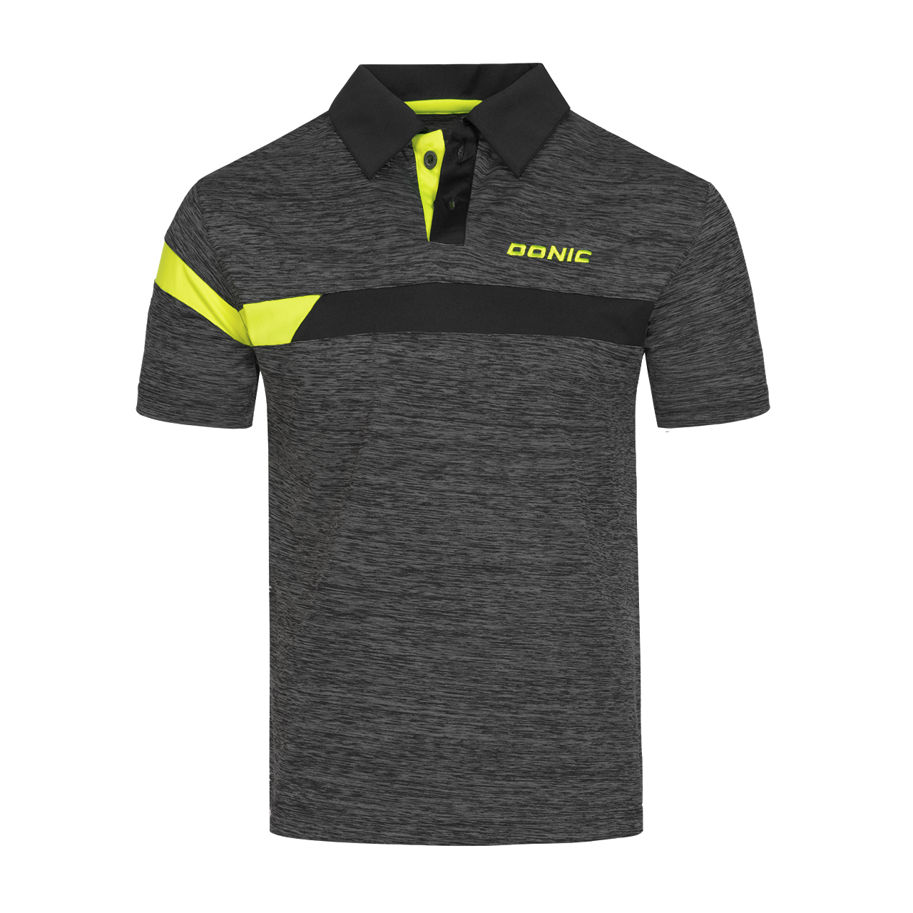 Tricou modern de tenis de masa realizat de DONIC. Confectionat dintr-o tesatura extensibila melanjata cu insertii de culoare pe fata si maneci. Fibra respirabila si functionala indeparteaza transpiratia de pe piele catre exteriorul tricoului si garanteaza ca tricoul este foarte confortabil de purtat in competitie si antrenament.